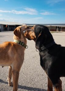 With a lot of energy to spare, Ruth loves to play and run around. Thanks to her social nature she´s able to socialize with many different groups of dogs throughout the day and is always at the center of attention, even encouraging the shy ones to join in.