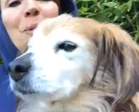 Sweet Sunday is the dog which was rescued during the filming of the German TV show “Tiere suchen ein zu Hause” and was adopted by its presenter Simone Sombecki afterwards inspite of Sweet Sunday’s age and illnesses.